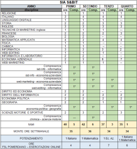 N.B. Il biennio AFM/SIA prevede il medesimo quadro orario di TUR e consente pertanto, alla fine del secondo anno, l’eventuale passaggio all’altro indirizzo senza alcun esame integrativo.