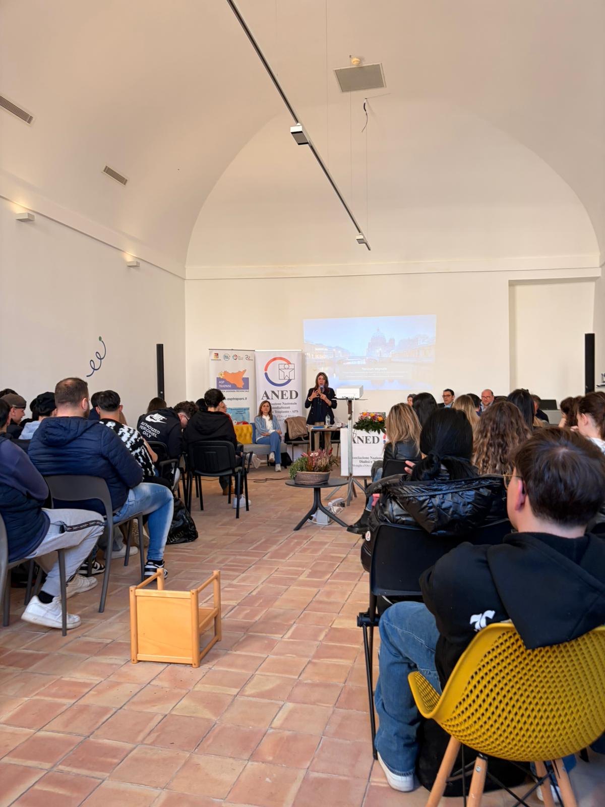 Le classi quinte dell’indirizzo Professionale dell’Istituto di Istruzione Superiore “Sciascia e Bufalino” hanno incontrato professionisti del settore sanitario per approfondire temi riguardanti la prevenzione e la donazione di organi. L’evento, promosso dall’Associazione Nazionale Emodializzati Dialisi e Trapianti, si è svolto presso il suggestivo Complesso Monumentale San Domenico e ha consentito ai nostri studenti di acquisire conoscenze specifiche sui trapianti e sulle realtà vissute dai pazienti in lista d’attesa. Numerosi sono stati i momenti di riflessione con importanti ricadute sulla formazione di cittadini e di futuri professionisti capaci di scelte consapevoli. Si ringraziano l’ANED e Ignazio Spagnolo, delegato dell’associazione per Trapani, l’Amministrazione Comunale di Erice e di Trapani e il Distretto Socio Sanitario 50.
