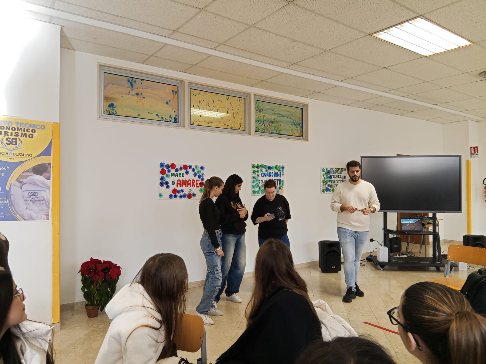 Gli studenti che hanno partecipato alla stagione teatrale 2025/2026 “Storie che riflettono” proposta dal Teatro Biondo di Palermo, nell’ambito del progetto PTOF “Alfabetizzazione all’arte”, oggi hanno partecipato ad un laboratorio condotto da attori e sceneggiatori del Teatro Biondo presso la sede di via Calvino.