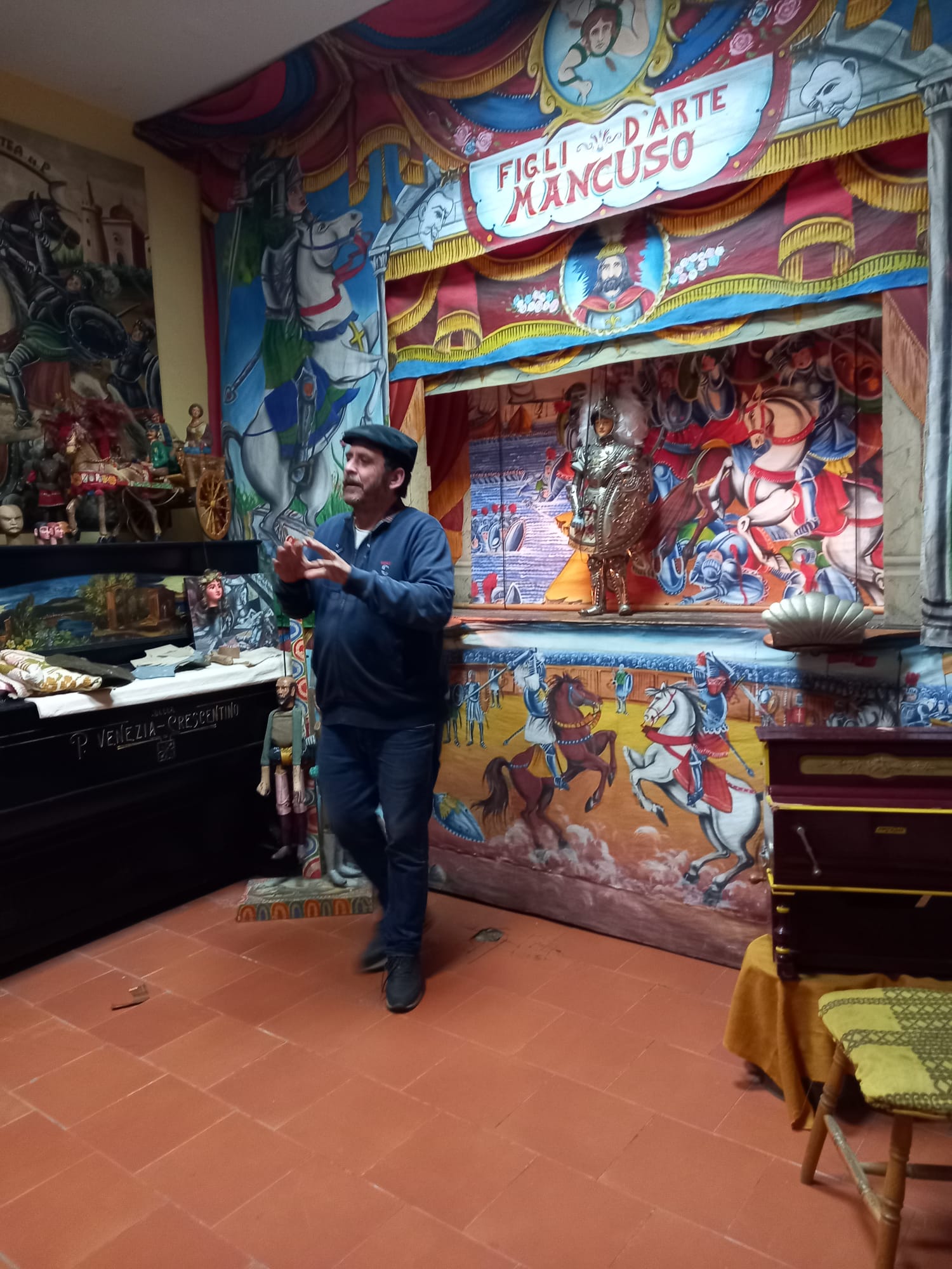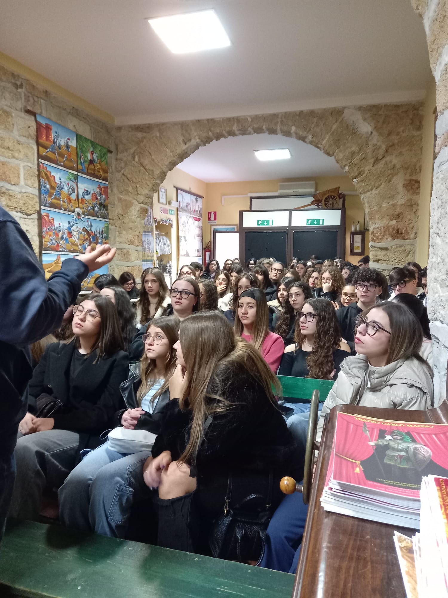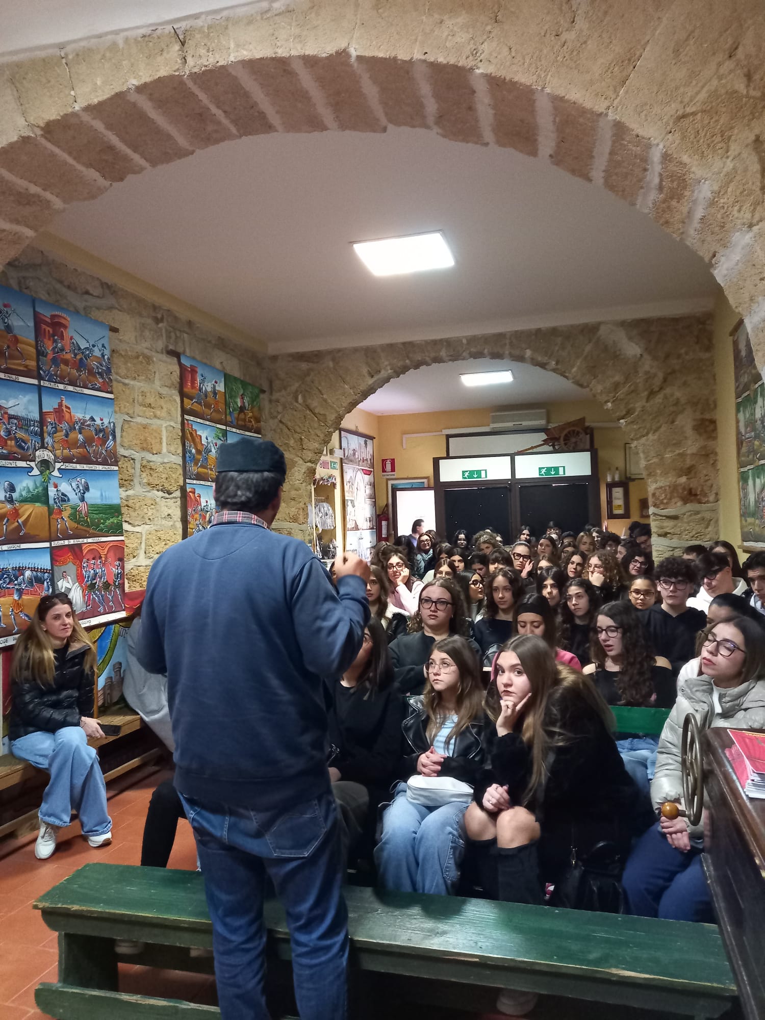 La mattinata ha avuto un inizio vibrante presso il Teatro Carlo Magno. Qui, gli studenti sono stati accolti dal puparo Enzo Mancuso e hanno assistito a una rappresentazione dell’Opera dei Pupi, pilastro del patrimonio immateriale UNESCO. Al termine della messa in scena, il Maestro ha aperto le porte del suo sapere artigianale, svelando ai ragazzi i segreti del movimento e della costruzione dei paladini: un momento di grande valore educativo che ha mostrato come passione e tecnica possano tramandare storie universali.