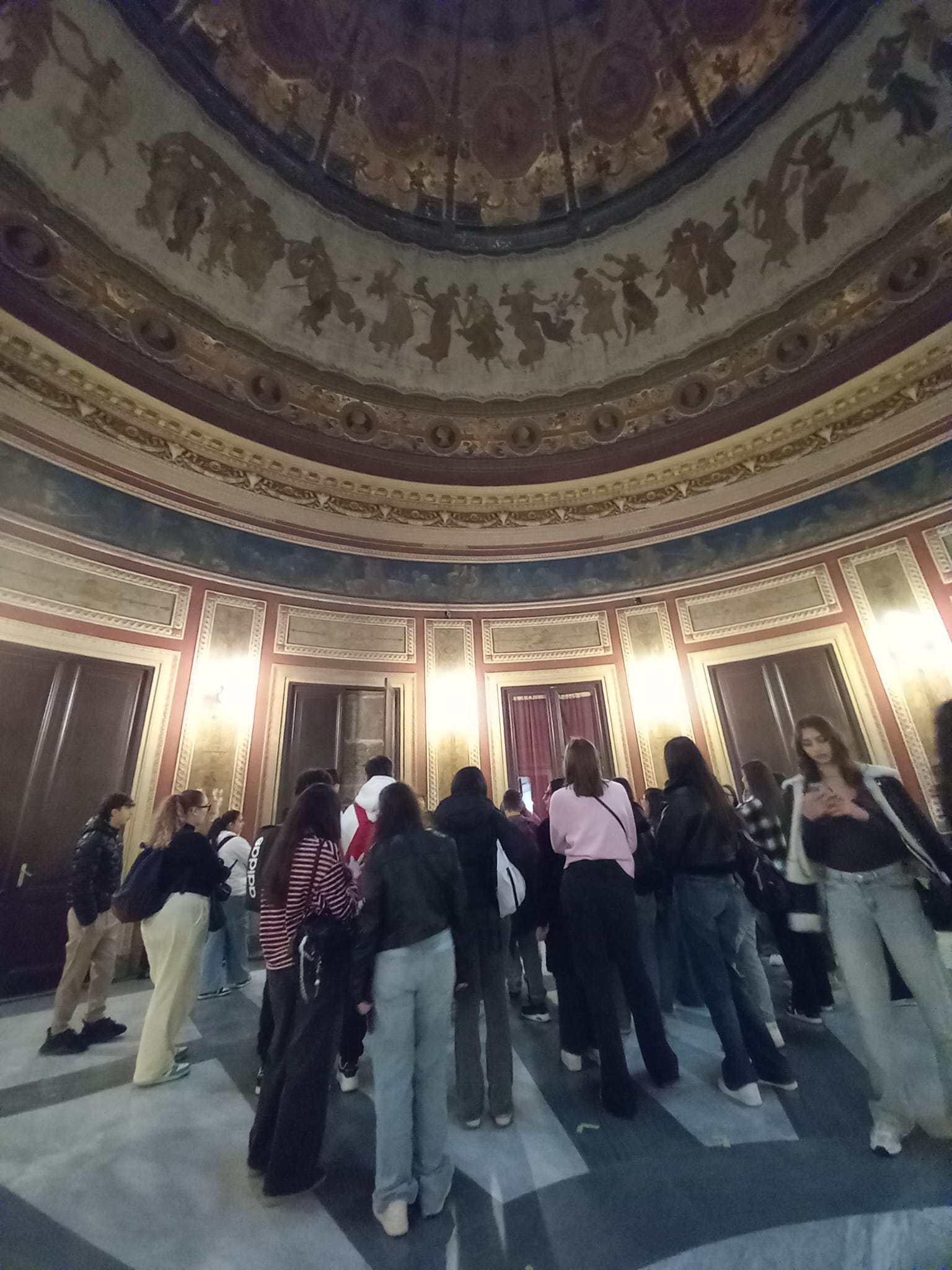 Il viaggio è proseguito con la visita guidata al Teatro Massimo, tempio della lirica e simbolo architettonico di Palermo nel mondo. Gli studenti hanno potuto ammirare la maestosità degli spazi e la complessità organizzativa di una macchina culturale di respiro internazionale, riflettendo sull’importanza della valorizzazione monumentale per lo sviluppo del territorio. Particolare attenzione è stata posta sull’eredità lasciata da Filippo ed Ernesto Basile, i quali, sostenuti dalla visione della famiglia Florio, hanno reso questo teatro il cuore pulsante della “Palermo Felicissima”.