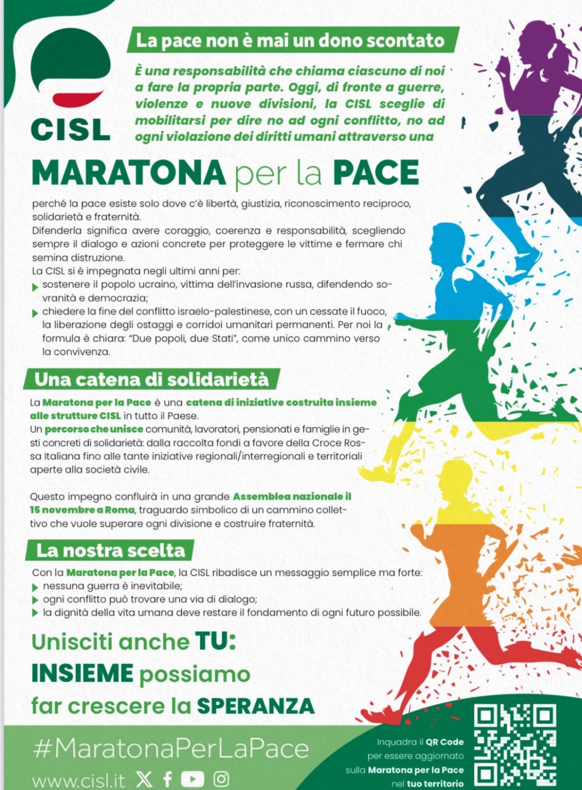 I nostri studenti hanno svolto un ruolo cruciale, mettendo in pratica le competenze di accoglienza e comunicazione acquisite durante il loro percorso di studi. Hanno contribuito al successo di un evento che veicola un messaggio essenziale, riassunto perfettamente nel motto della manifestazione: “Maratona per la Pace: perché la pace esiste solo dove c’è libertà, giustizia, riconoscimento reciproco, solidarietà e fraternità.” Questa profonda convinzione guida l’impegno della CISL contro ogni guerra e ogni violazione dei diritti umani, in vista di una pacifica convivenza tra i popoli. I nostri ragazzi, rappresentando l’Istituto con professionalità e sensibilità, hanno avuto l’opportunità unica di essere parte attiva di questo percorso di cittadinanza e di valori. Questa esperienza di Formazione al Lavoro e Sviluppo (FSL) si è rivelata molto più di una semplice prova pratica delle loro competenze tecniche: è stata una vera e propria lezione di vita e di educazione civica. La scuola, in tal senso, si conferma luogo fondamentale dove si coltivano i semi della pace, della giustizia e del riconoscimento reciproco. L’attività ha così rafforzato negli studenti i principi irrinunciabili di partecipazione, rispetto e solidarietà, essenziali per costruire un futuro di pacifica convivenza.