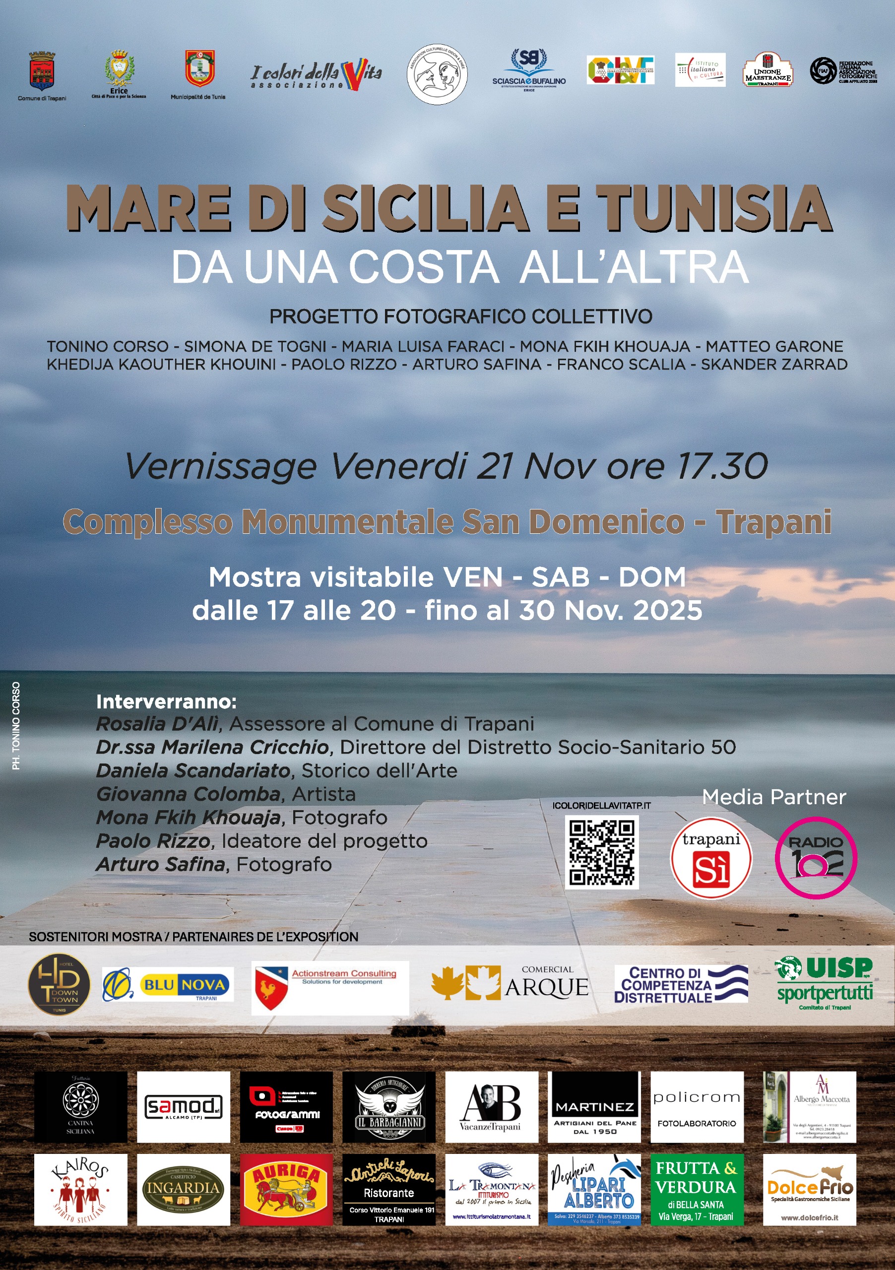 La mostra, reduce dal successo ottenuto a Tunisi, è nata dal gemellaggio tra l’associazione trapanese I Colori della Vita e l’Associazione tunisina Didone&Enée. L’esposizione è una celebrazione visuale potente che ruota attorno al concetto unificante: “Mare di Sicilia + Mare di Tunisi = Mediterraneo”. Attraverso gli scatti di dieci fotografi, essa crea un vero e proprio ponte culturale, narrando storie contemporanee e rendendo omaggio ai paesaggi e alle persone delle due sponde del Mediterraneo, dando voce e visibilità a luoghi e individui spesso trascurati.
